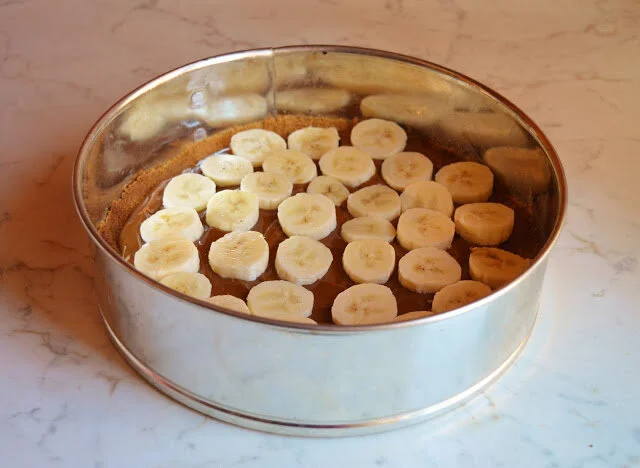Happy Friday everyone! Seeing as how I'm leaving for a trip to Madrid soon, and things are busy at work, I'm going to keep this post for Banoffee Pie -- one of my very favorite desserts! -- short and sweet. Now, if you've had the misfortune of never hearing about Banoffee Pie until just this moment, here's a little background: it's a British dessert, one that I'm sure Princess Kate, Harry Potter, and David Beckham all enjoy. It is quite simple, consisting of a buttery, crisp cookie crust, a layer of gooey toffee (or dulce de leche, but Banoffee Pie is nicer sounding than Banulce de Leche Pie) sliced bananas, and a generous swoosh of freshly whipped cream. As you can imagine, it is insanely delicious and insanely easy to prepare, meaning that you could very well make and finish this whole pie off by yourself -- I speak from experience -- so it's best to make this for a group.