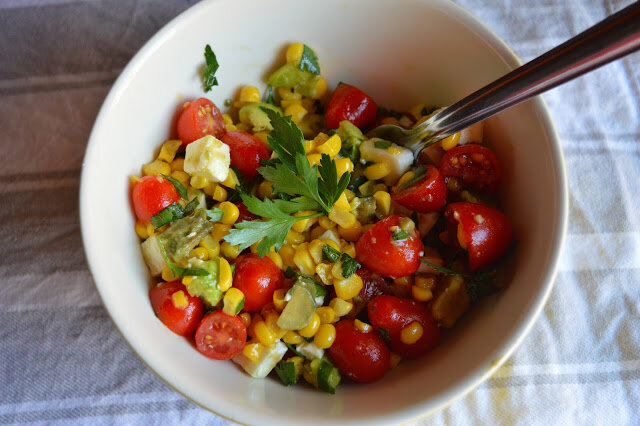 Corn, Avocado, and Tomato Salad with Honey Lime Vinaigrette