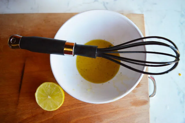 To make the dressing, whisk all ingredients together in a small bowl. Pour onto the salad and toss well. Distribute into bowls and garnish with more parsley if desired.