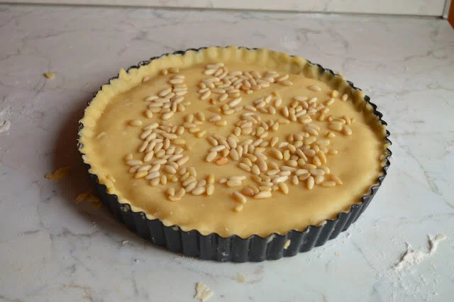 Top the Torta with your pine nuts, pressing them down lightly so that they adhere to the crust. Bake for 50 minutes, or until the crust is light golden brown. If the Torta starts to brown too quickly, cover it with some aluminum foil. Let it cool completely before serving.