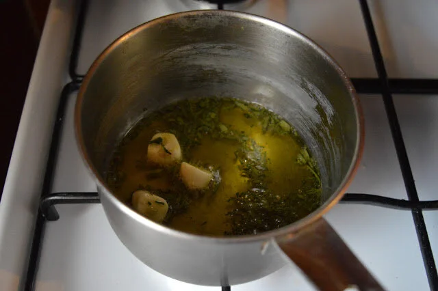 A couple of notes: I am not a huge fan of garlic, so I infused the oil with the cloves and then threw them away. If you like garlic, feel free to mince it finely and toss it with the potatoes at the end. Make sure all the potatoes roast in one even layer to ensure maximum crispiness. Lastly, my apologies for the slightly dark photos, but these were photographed on a rainy, cloudy day, which is actually just the sort of day one should be eating a big portion of super cozy comforting roast potatoes.