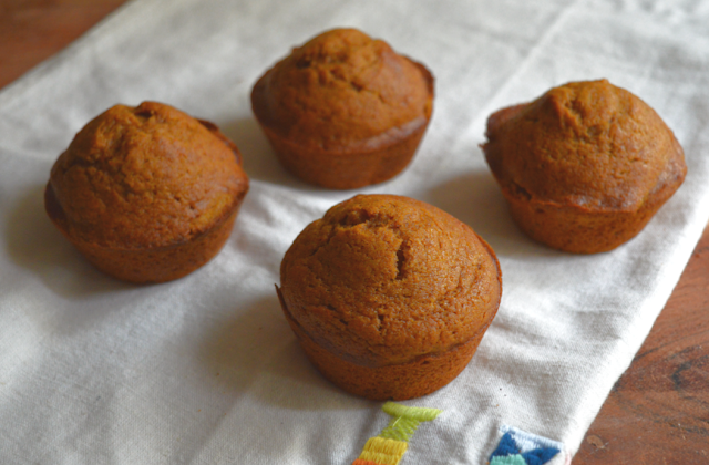 But to the recipe! I've already covered pumpkin done the Italian way -- these cloud-like, lightly spiced, sage-tinged gnocchi di zucca -- but as P&B is a blog that shares recipes from both my adopted and home country, I felt it was only right to share pumpkin done the American way, or rather, the quintessential American muffin made with yes, you guessed it, canned pumpkin. Apart from being one of the easiest recipes to throw together, you'll find that these beauties taste like Fall, poured and baked in a muffin pan, soft and fluffy and filled with warming spices like cinnamon and ginger and nutmeg, which essentially equate to the culinary version of a warm sweater on a cold day. They make for a cozy breakfast or a great afternoon pick-me-up, and the scent they fill your house with will make you downright happy, and, if you're anything like me, the most popular person on the fourth floor of your building (these are fantastically fragrant). Make these asap and thank me later.