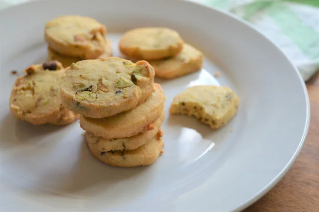 A couple of notes: Pistachios were fantastic here, but I bet this shortbread would also work great with pecans, hazelnuts, or even macadamia nuts if you want to make extra luxurious shortbread. These would also be nice dipped in dark chocolate. This dough can be made up to five days ahead. It also freezes very well (just thaw it in the refrigerator when you want to use it). The cookies, once baked, can be made up to four days in advance, if stored in a tupperware.
